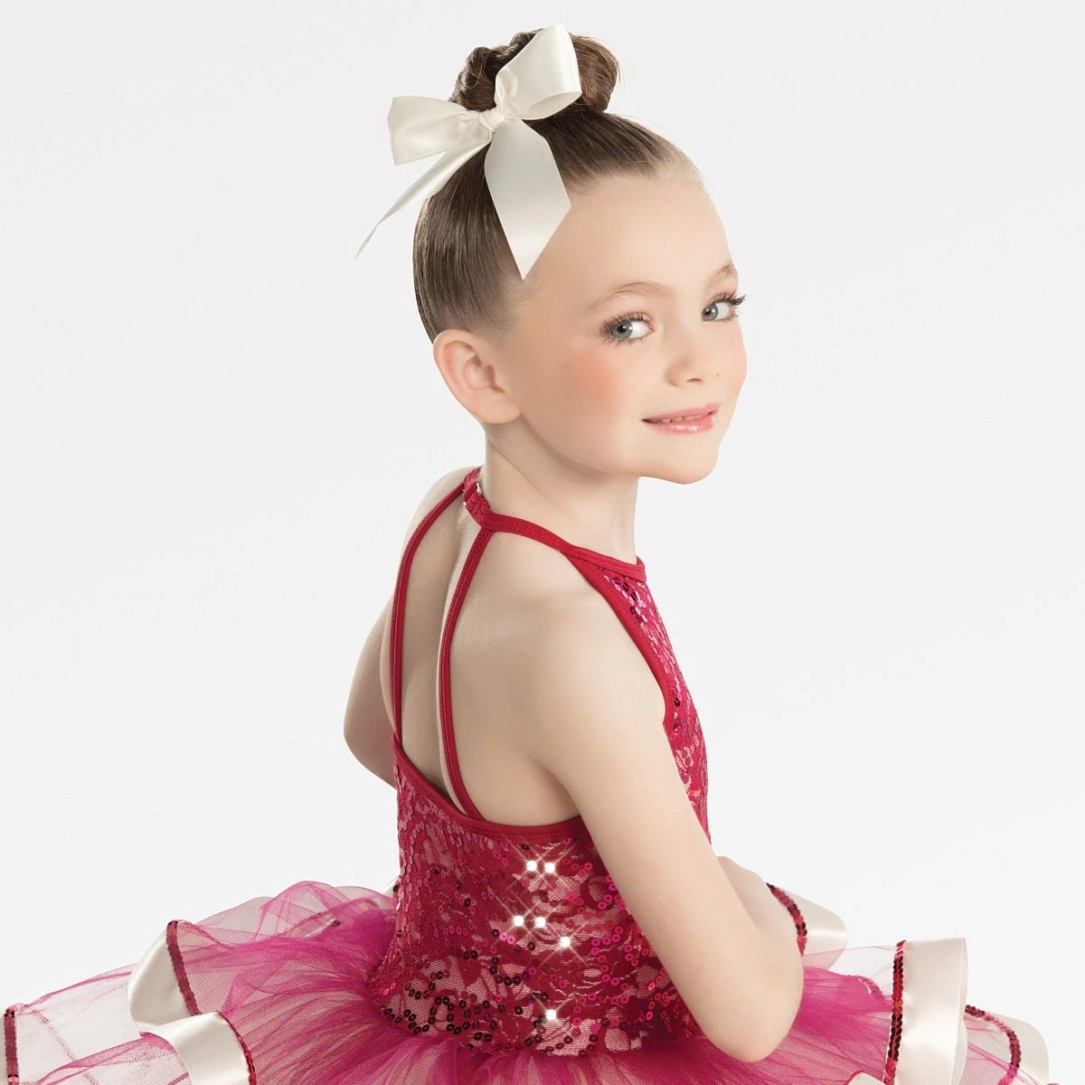 * Skirt has three layers of net under two layers of tulle, and the top two layers of tulle are edged with satin ribbon and sequin trim